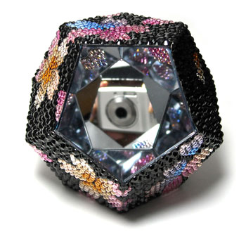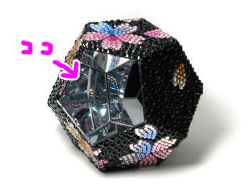 この作品は十二面体で、その十二面の一面だけ開いています。