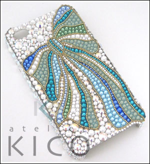 人気上昇中のブルー×グリーンリボンiPhone4デコケースが